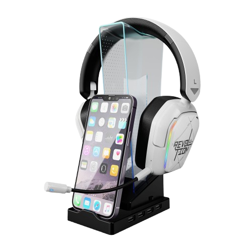 Mobile Phone Holder: Includes a convenient mobile phone holder that provides a stable stand for your phone alongside your headset.